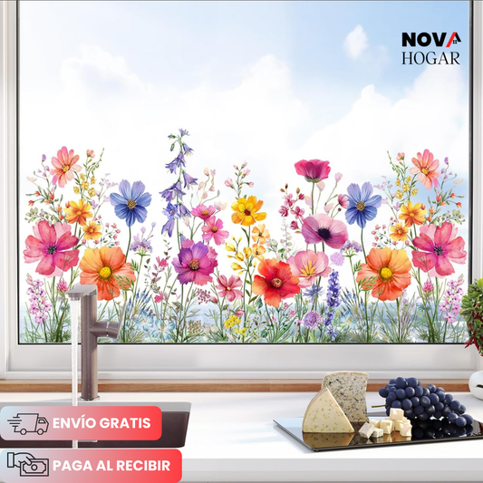3x1 FloraVis™ Hermoso Adhesivo Electroestático Floral para Ventanas