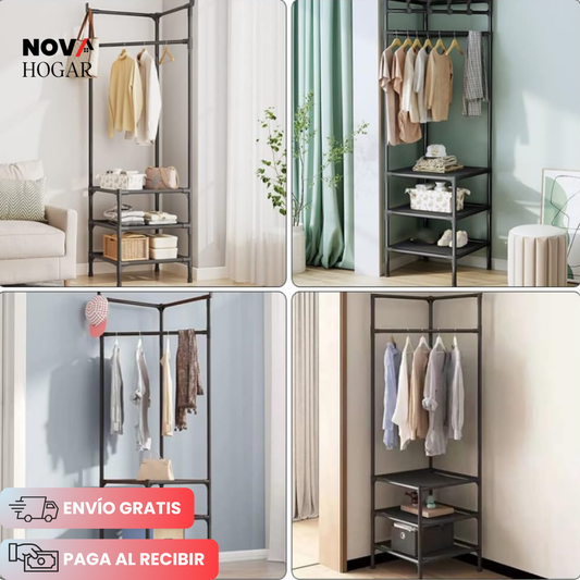 CornerFit™ Organizador Esquinero de 3 Niveles + Perchero