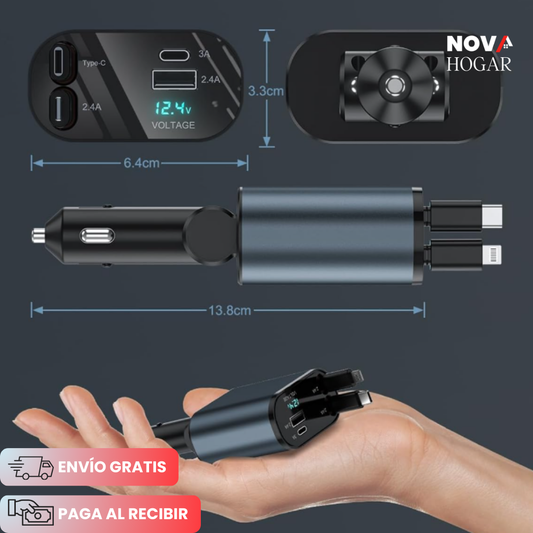 AutoCharg™ Cargador Retráctil 4 en 1 para Vehículo