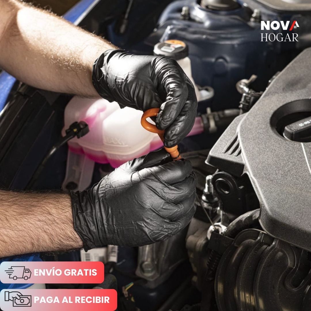 Usar guantes delgados que se rasgan al mínimo contacto con aceites o herramientas expone tu piel a manchas difíciles, químicos peligrosos y cortaduras innecesarias constantemente.