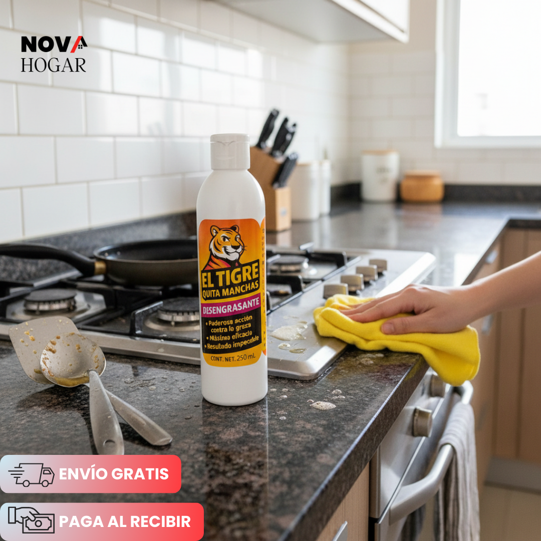 Luchar contra la grasa quemada y manchas viejas en la cocina es agotador, requiere fregar por horas y la mayoría de limpiadores no funcionan.