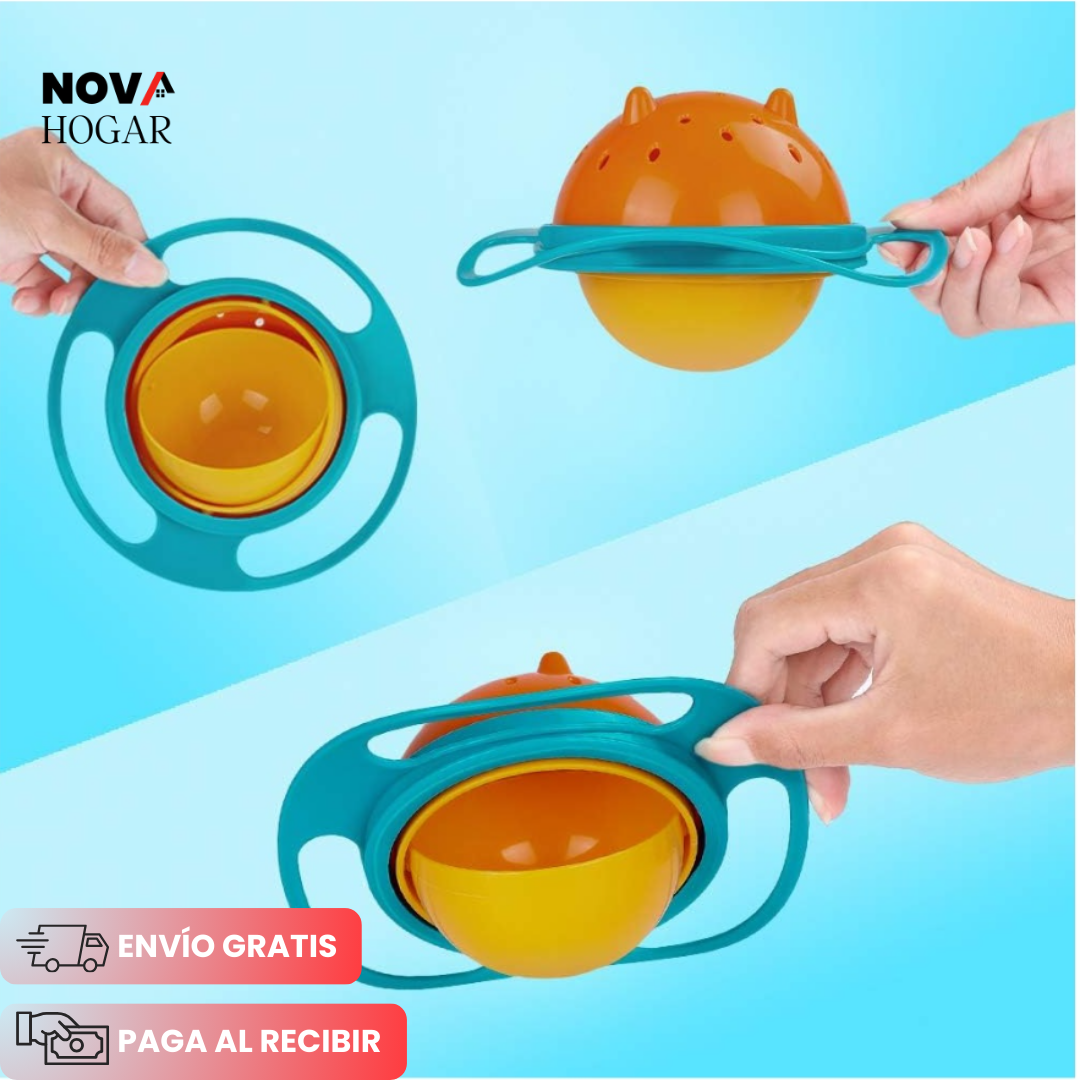 Con su diseño giroscópico de 360°, OrbitBowl™ mantiene la comida en su lugar, sin importar cuánto se muevan tus hijos. Es seguro, divertido y práctico, el aliado perfecto para padres ocupados.